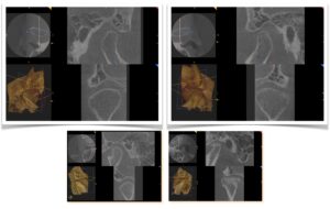 - 顎の動き、骨の状態、周囲粘膜と舌、噛み合わせの位置関係をチェック